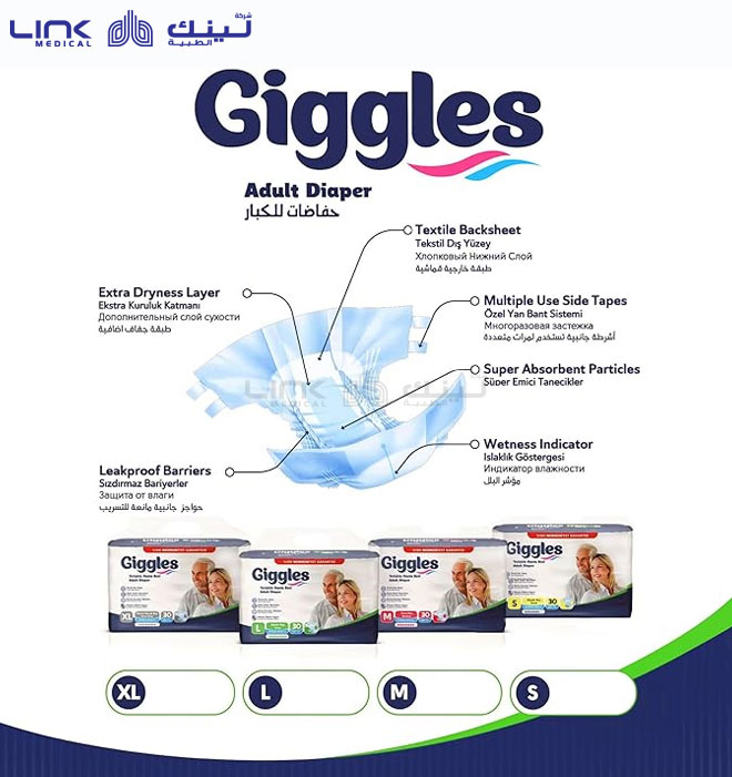 حفاضات كبار السن | جيجلز | لاصق | 30 قطعة | L