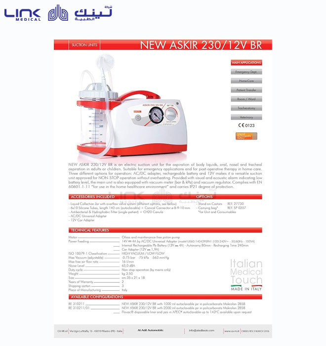 CA-MI علامة تجارية إيطالية رائدة في الأجهزة الطبية، معروفة بابتكاراتها وجودتها العالية في أجهزة الشفط الطبية.